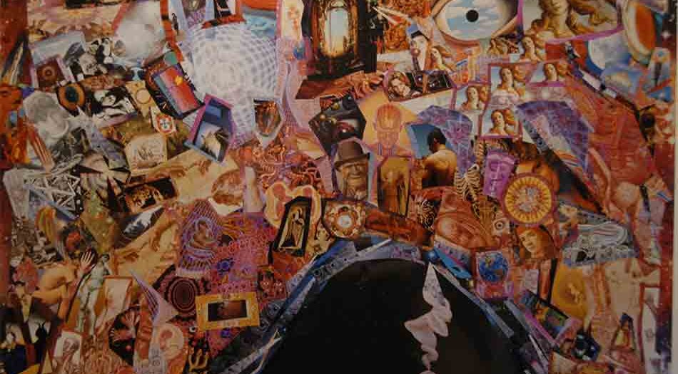 Cover Image—Parallel Journeys, my first collage, was partly a tribute to Alex and partly a foreshadow of my willingness to slash into his artwork as I sacrificed my first copy of Sacred Mirrors to obtain visionary source material