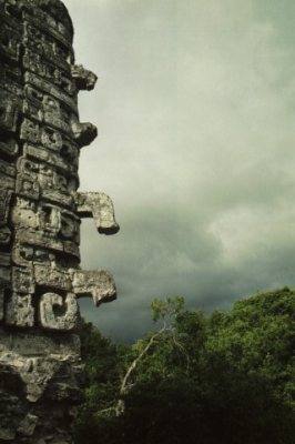 Strange effects were happening to me, but what to attribute them to? The Mayan ruins? The heat? The humidity? The margaritas? Internal cycles and perturbations? All of the above? Intense changes in my relationship with the hyperspatially existing companion that lives alongside of me? I never know quite how to describe this without sounding like a goofy New Age channeler or a schizophrenic who needs his meds adjusted. This companion came into the foreground of my awareness and stayed there for much of the trip, his presence far more physical, immediate and dynamic than usual. There were many changes in the relationship and new developments, and I had to divide my attention between my awareness of this companion and of my corporeal traveling companions trading places in the foreground or background as the need of the moment required. Multiple streams of often dissonant realities poured into my perception—the companion relationship, the tensions and camaraderie of the traveling group, doing I Ching readings and counseling with John about drastic personal shocks he was experiencing in his life back in the States, the world of modern Mexico and interactions with Mexicans, their projections and my counterprojections on them, the flora and fauna of the tropics and the new flora and fauna in my gastrointestinal tract, the power and otherness of the remnants of Mayan civilization, the practical details and logistics of Third-World travel, seeing the world through my eyes, the companion’s eyes, and much of the time seeing it through the viewfinder of my camera, concentrating on the composition with one eye, another eye keeping track of my traveling companions so I didn’t get lost, and at the same time trying to keep eyes in the back of my head so somebody didn’t yank my camera.